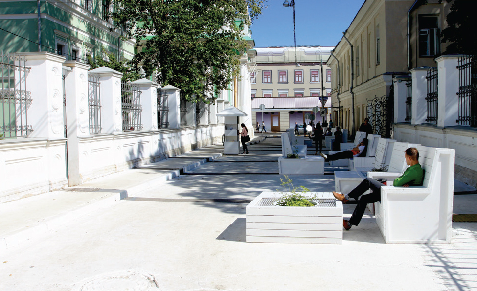 Chernigovsky Lane is a narrow street located in the historic district of Moscow, surrounded by churches and historic buildings. Neighborhood residents worked with the local government to convert the street into a pedestrian plaza. The plaza has since become a popular destination for residents and tourists looking to relax after a busy day in downtown Moscow.