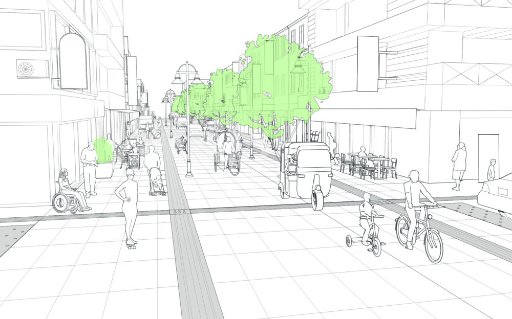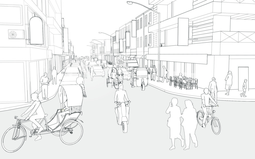 The illustration above demonstrates the same principles as outlined on the previous page in a different context with a wider street width.