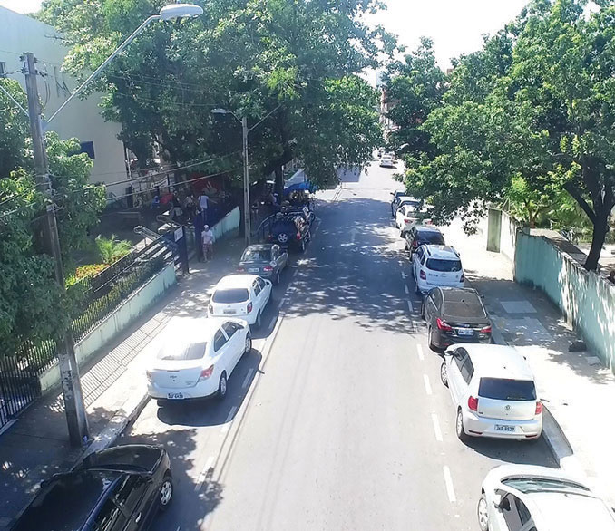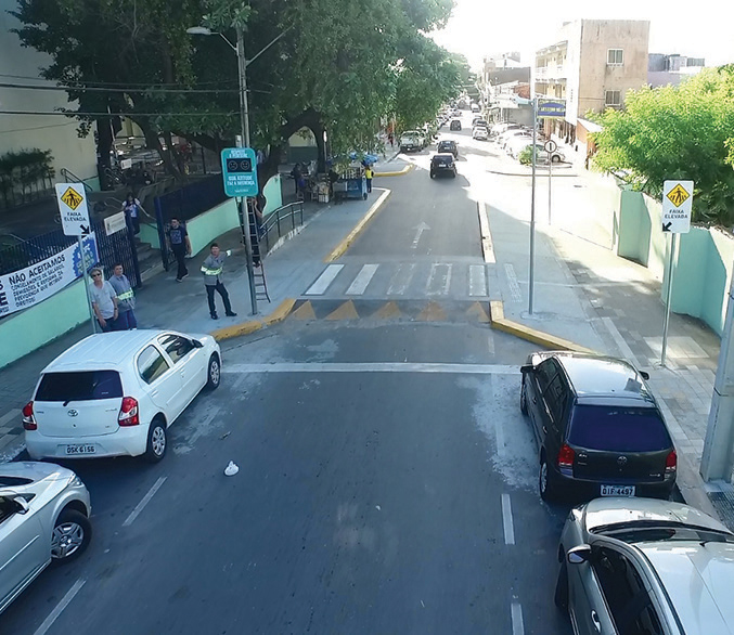 Fortaleza, Brazil. Before and after images showing a residential street transformation using traffic calming measures.