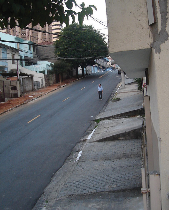 Sidewalks are discontinuous or non-existent, resulting in a lack of accessibility for pedestrians. Driveway ramps, stoops, light poles, and other utilities create frequent obstructions.