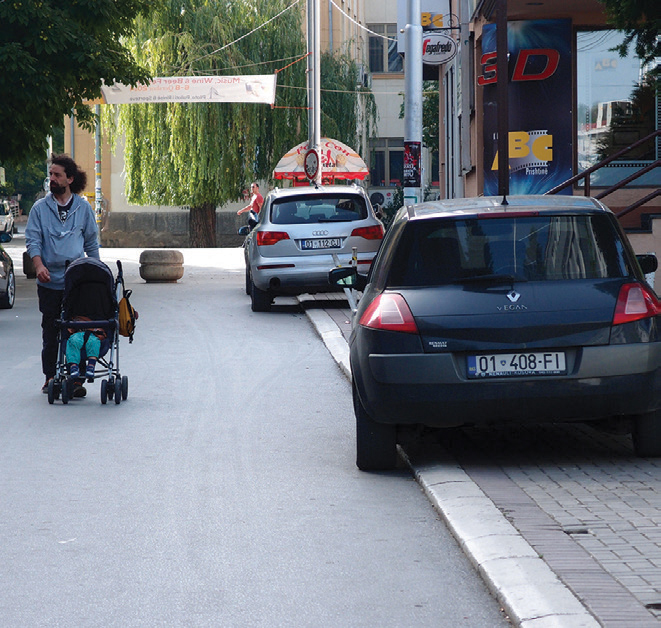 Instead of serving the many functions that a neighborhood street should, the entire right-of-way is dedicated to moving and parked vehicles.