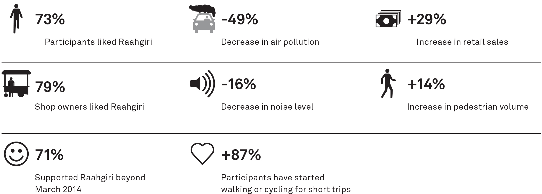 Raahgiri Day has been chosen as one of the 24 most inspiring stories for “Pathways to Green Cities” by the Global Advisory Committee of the Earth Day Network. The Ministry of Urban Development (MoUD) has documented Raahgiri Day as a best practice in urban transportation in Indian cities.
