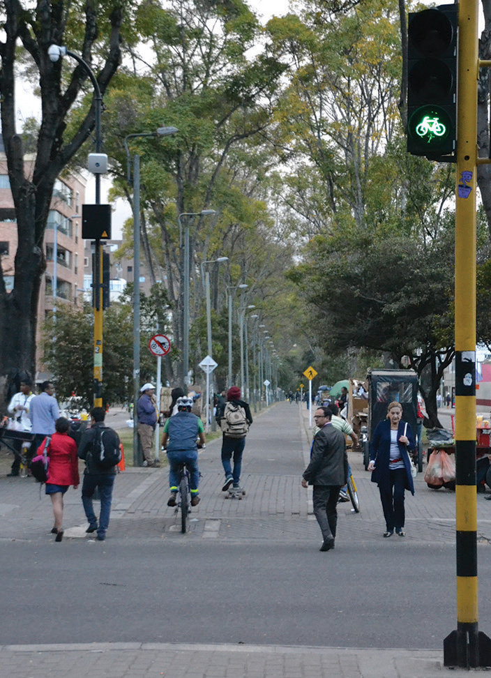 Bogota, Colombia. A bidirectional bike lane in the central median.