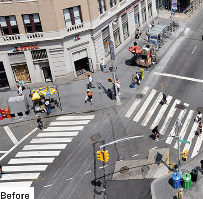 Use the variation between the two sets of data to examine the changes to the street condition, to measure shifts in use and function, and to evaluate the resulting impacts.