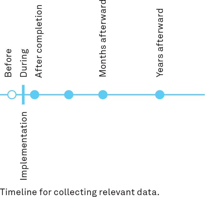 Collect data before and after a project to provide comparisons and capture impacts.