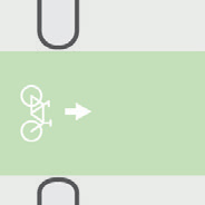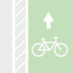 At-grade, marked buffers are painted spaces parallel to cycle lanes that separate them from adjacent motor vehicle traffic. They improve comfort and safety for cyclists while discouraging motorists from entering the cycle lane. Buffers should be 1 m wide and can also be used next to parking lanes to prevent cyclists from being hit by opening car doors.