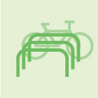 Cycle racks are inexpensive street elements that allow cyclists to securely park their cycles. While there are many designs, they are generally made of metal tubing and are bolted to a concrete surface. They are most useful when placed near major destinations or in commercial areas, and should be placed at least 0.75 m apart. While they create opportunities for unique designs, the functionality and safety of the rack should not be compromised for visual appeal.