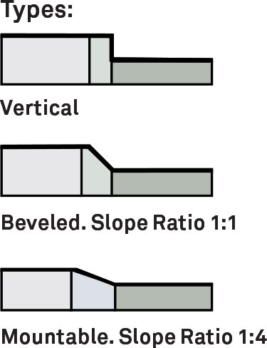 When cycle tracks are raised from the roadbed, a minimum curb reveal of 5 cm should be provided between the cycle lane and the pedestrian area.