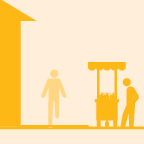 Providing storage for street vendors enhances comfort and work conditions and allows them to store unsold goods in a safe place adjacent to their work area. Fixed stands for street vendors in specific areas such as plazas and esplanades can also enhance the character of the space.