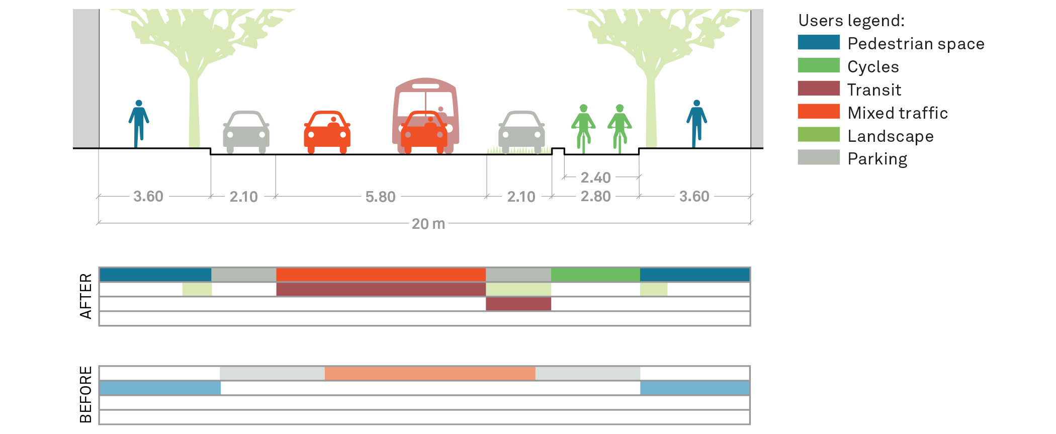 To ensure a safe environment and maintain an amenity for pedestrians and residents, the following measures provided an integrated urban intervention: