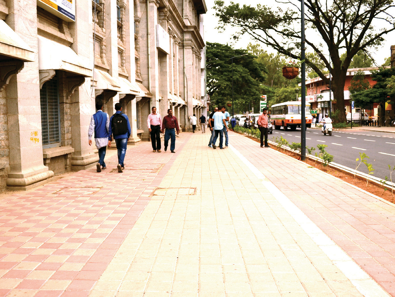 Dedicated and paved bus, auto rickshaw, and parking bays.