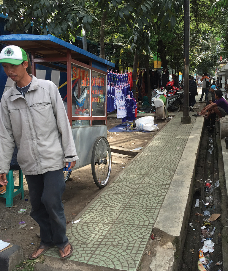 A lack of cycle facilities encourages cyclists to ride on sidewalks, creating safety concerns for pedestrians.