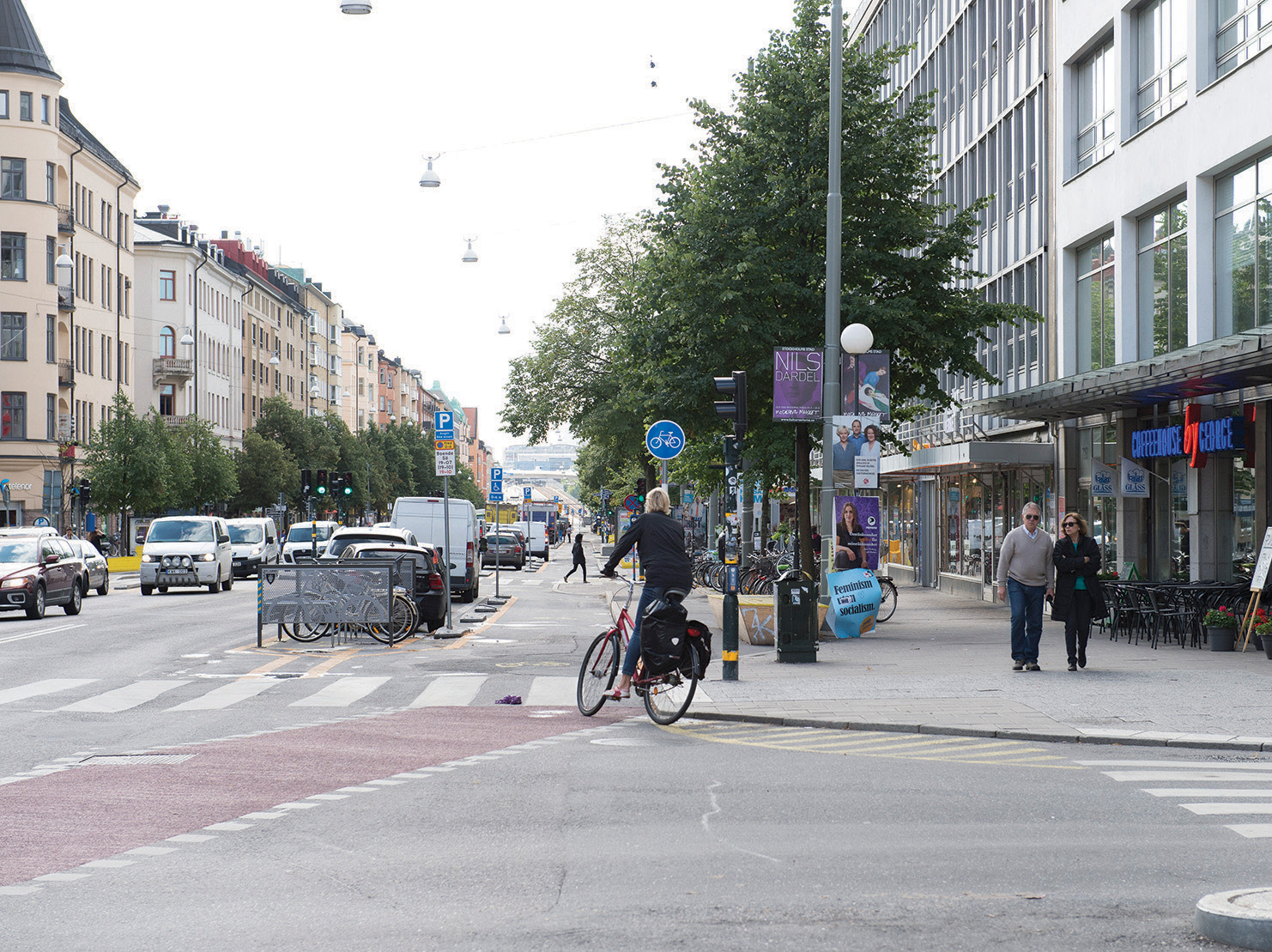 Götgatan is a lively main street in the inner-city Södermalm district, with offices, shops, and restaurants serving a dense residential district. The street is also the most important route for cyclists coming to the Central Business District from the southern suburbs.