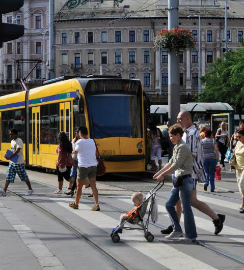 Reconfigure this street to re-establish it as an important commercial corridor. Restrict or filter through-traffic and separate transit, cycle, and pedestrian zones within the right-of-way. Prioritize stopping-and-staying activities.